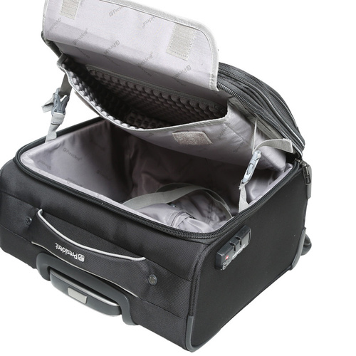 چمدان خلبانی 16 اینچی مدل 6149TC پرزیدنت President دارای رنگ مشکی و جنس این محصول از پارچه جودون با تراکم بافت بالا، بسیار مقاوم و محکم است . دسته ترولی این محصول چهار استپ با طراحی بسیار مناسب از جنس آلیاژ مرغوب آلومینیوم ساخته شده است که بسیار مقاوم می باشد.