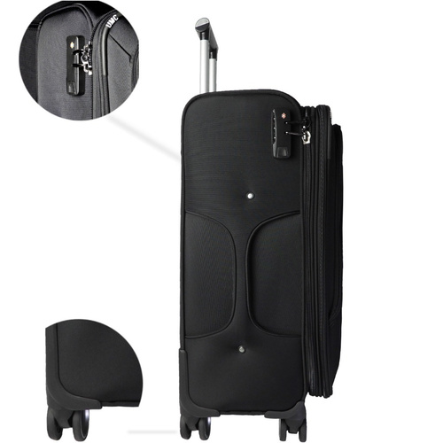 چمدان مسافرتی برند escort طرح Umc سایز بزرگ ارتفاع 70 سانتی بهگونهای طراحی شده که حمل آن راحت باشد. دسته تلسکوپی با ارتفاع قابل تنظیم و چرخهای گردان 360 درجه، شما را قادر میسازد بهراحتی در محیطهای شلوغ مانند فرودگاهها و ایستگاهها حرکت کنید. این چمدان همچنین دارای یک دسته جانبی است که فعالیتتان را در هنگام جابجایی آن تسهیل میکند.