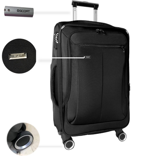 چمدان مسافرتی برند escort طرح Umc سایز بزرگ ارتفاع 70 سانتی دستگیره آسان حمل و چرخهای گردان 360 درجه، جابهجایی چمدان را در فرودگاهها و مکانهای شلوغ بسیار راحت میکند.
